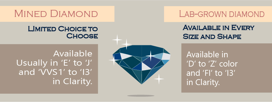 If you want to customize a Natural Diamond, you will hardly find a shop that can customize it according to your needs. So, customers purchasing a natural diamond have to compromise somewhere when it comes to a particular cut. However, almost all the shops selling lab diamonds also known as cultured diamonds can easily personalize your gemstone according to your needs. As a customer, you can select your favorite design and style it further accordingly.